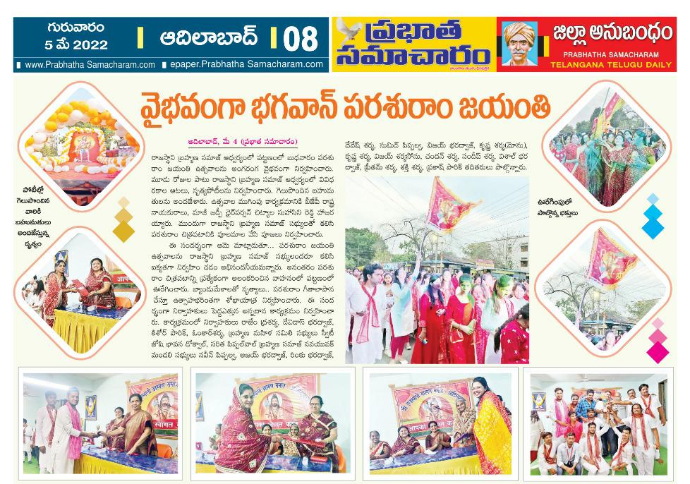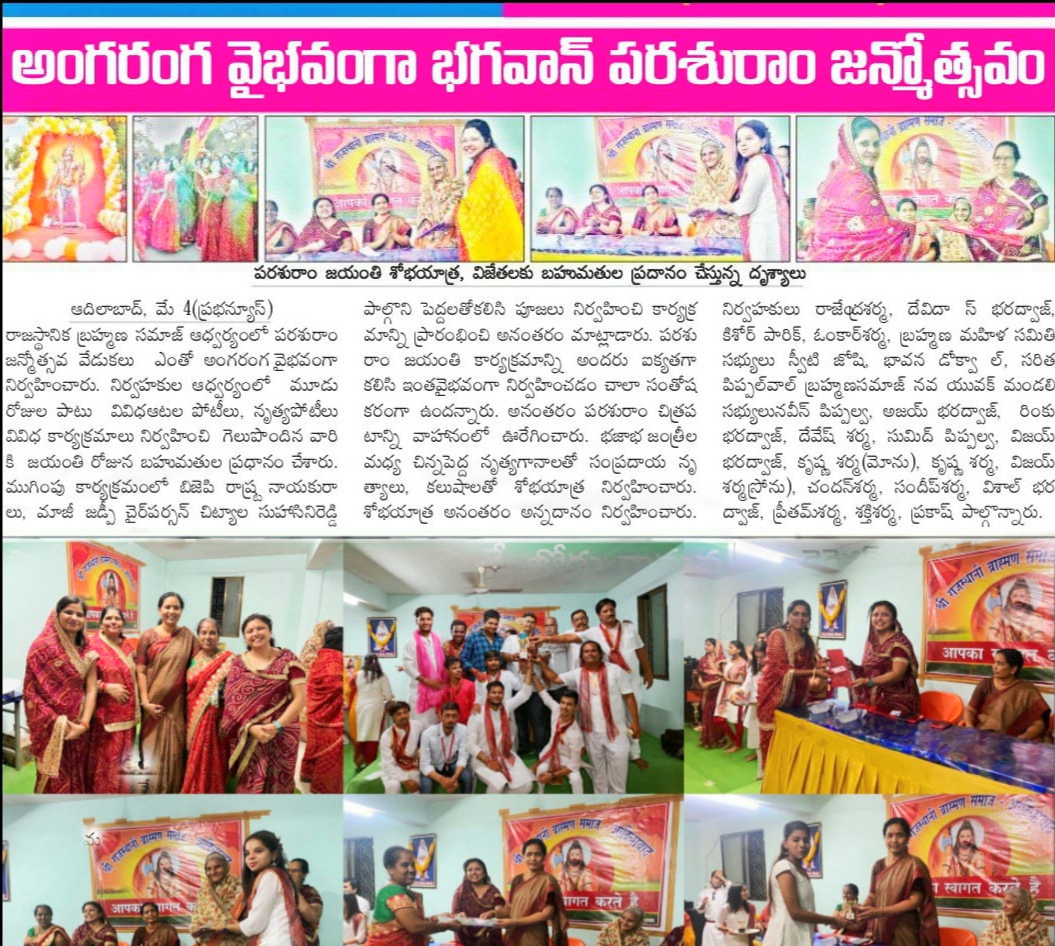 To enlarge the activities of the Brahman Samaj in Adilabad and to service mankind in General Sri Parshuram Brahman Samaj, Adilabad was founded with the view of providing better religious, social, educational and cultural exchange among the people of Brahman Samaj.