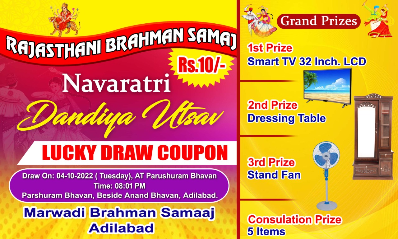 9 Days Dandia Garba Organized by Sri Parshuram Navyuvak Mandal & Mahila Mandal Adilabad.