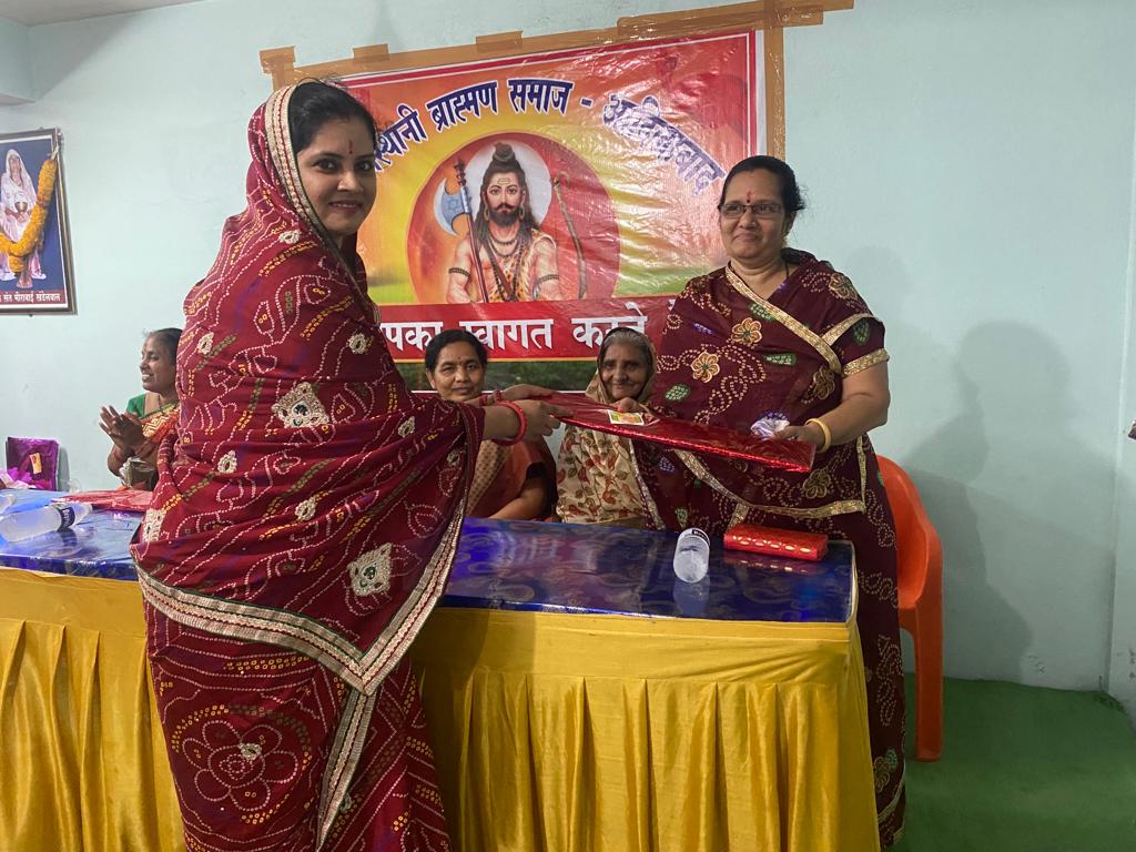 рд╢реЛрднрд╛ рдпрд╛рддреНрд░рд╛ рдореЗрдВ рдкреВрд░рд╛ рдмреНрд░рд╛рд╣реНрдордг рд╕рдорд╛рдЬ рдПрдХ рдЬреБрдЯ рд╣реЛрдХрд░ рдЕрдкрдиреА рдПрдХрддрд╛ рджрд┐рдЦрд╛рдИ ред рдорд╣рд┐рд▓рд╛рдУрдВ рдиреЗ рд╣рд╛рдд рдореЗрдВ рдХрд▓рд╢ рд▓реЗрдХрд░ рдФрд░ рдЪреБрдирд░реА рдХреА рд╕рд╛рдбрд╝реА рдФрд░ рдкреБрд░реБрд╖
